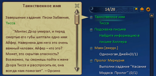 - В списке доступных заданий (клавиша «U») можно настроить автопуть, кликнув по имени НПС (клик по местности, где находится персонаж, не работает). В случае если имя НПС не видно, попробуйте прокрутить описание задания, возможно, оно находится ниже.